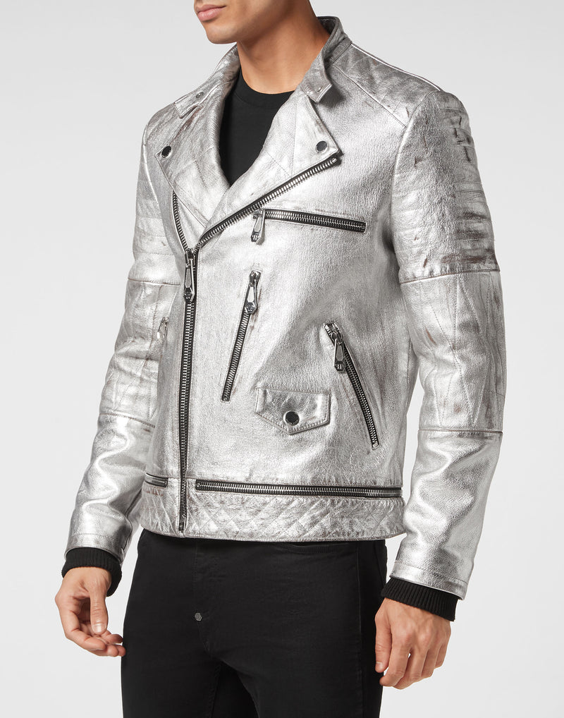 Leather Biker Flowers Silver